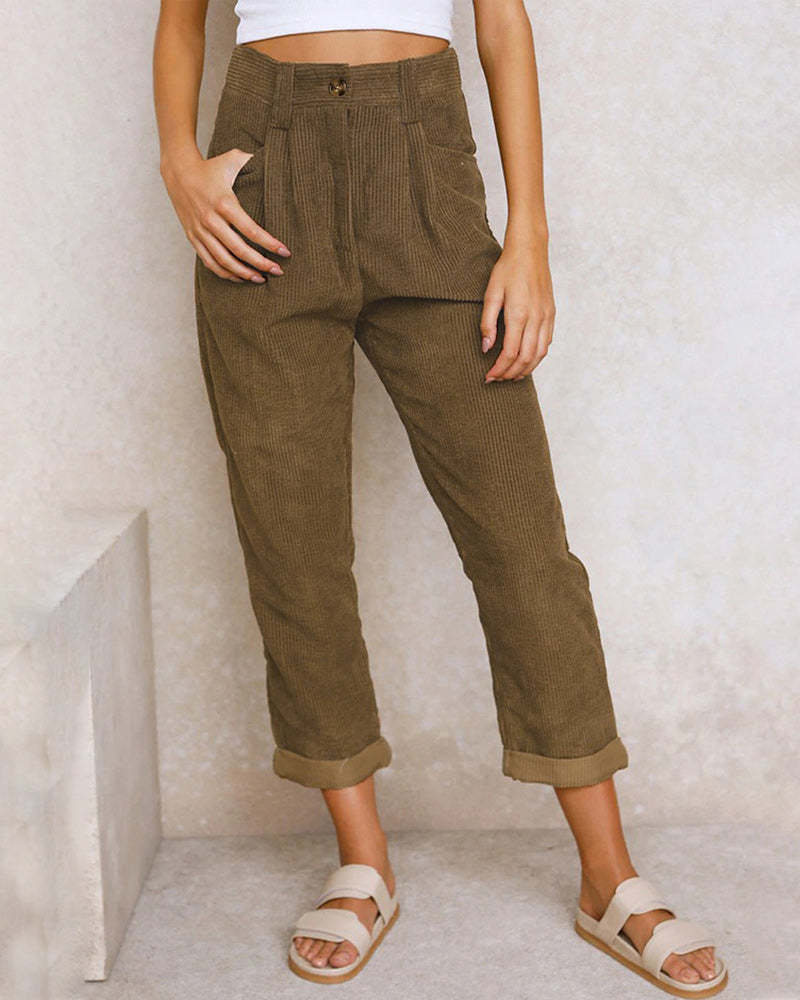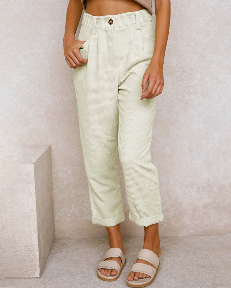 Introducing Aletta - Corduroy Pants for Women, designed for comfort and style. These corduroy pants boast a solid color and a loose, straight-leg fit, accentuating the high waist for a flattering silhouette.