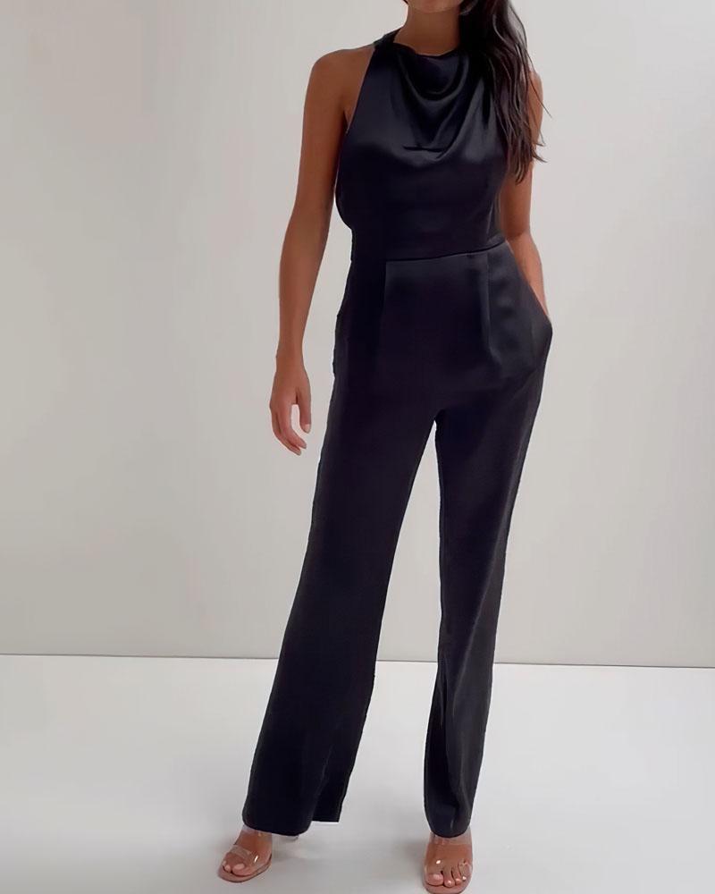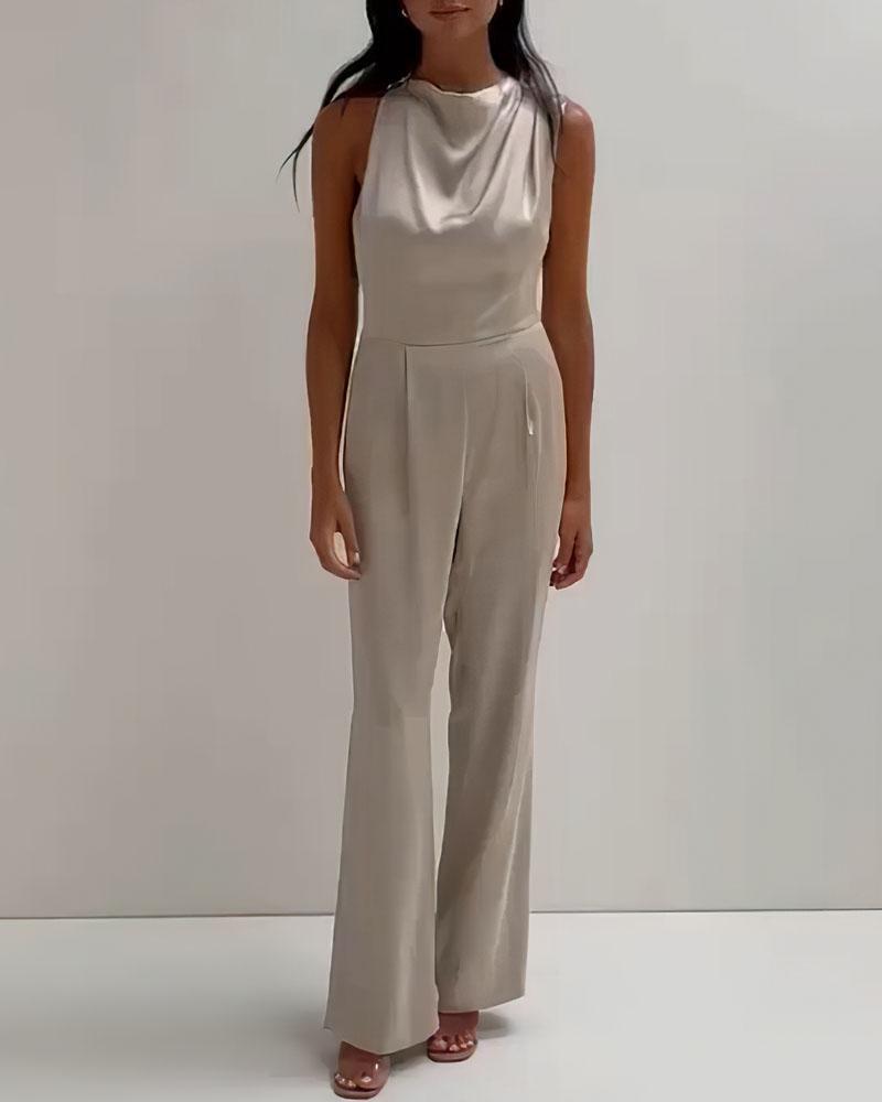 Introducing Amber - Women's Elegant Jumpsuit, a chic and versatile addition to your wardrobe. With its solid color and sleeveless design, it offers both comfort and style, making it perfect for any occasion.