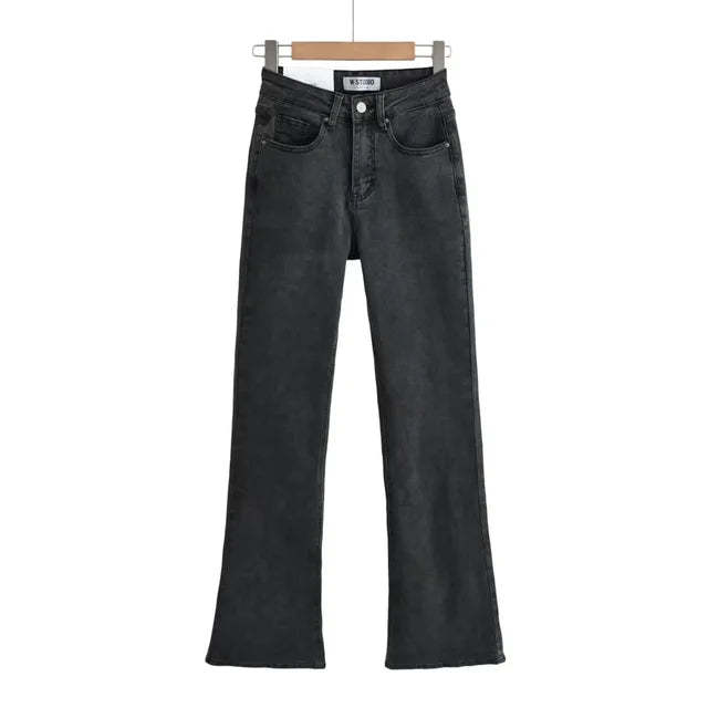 Enhance your wardrobe with Ara - High Waisted Heart Fringe Jeans featuring heart-shaped fringe detail bordered by frayed edges on the back pocket. These jeans add a charming touch to traditional denim styles, making them ideal for those who want to make a playful statement through fashion. They make for a delightful and stylish choice for any laid-back outfit.