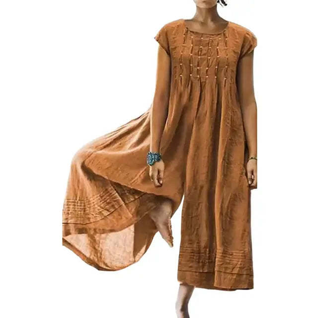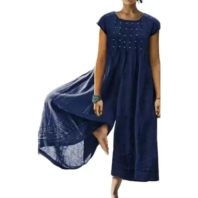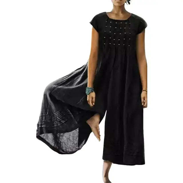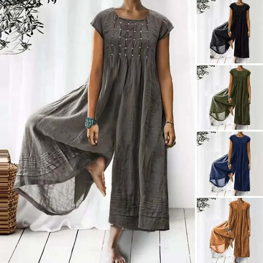 This Blythe - Casual Loose Jumpsuit's loose fit and wide-leg design provide both comfort and a relaxed, chic look. With a round neck and short sleeves, it's perfect for any casual occasion.