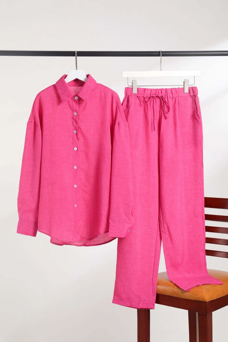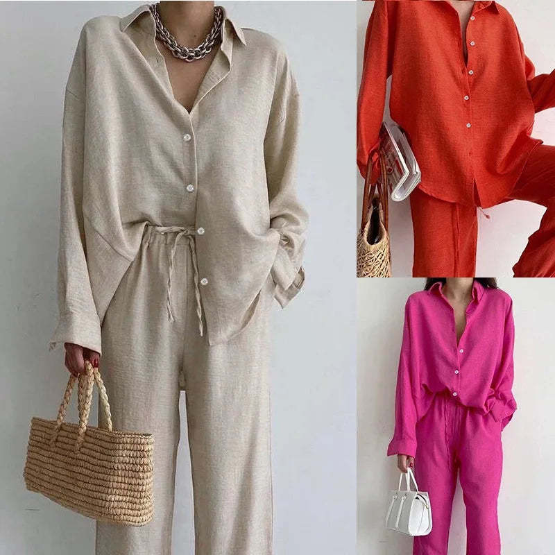 Brianna - Comfortable Set: Soak up the sun in style and comfort with this gorgeous blouse and wide-leg trousers. Perfect for sunny days, the blouse is crafted from breathable fabric, while the trousers feature a loose fit and a practical drawstring waistband for ultimate comfort.