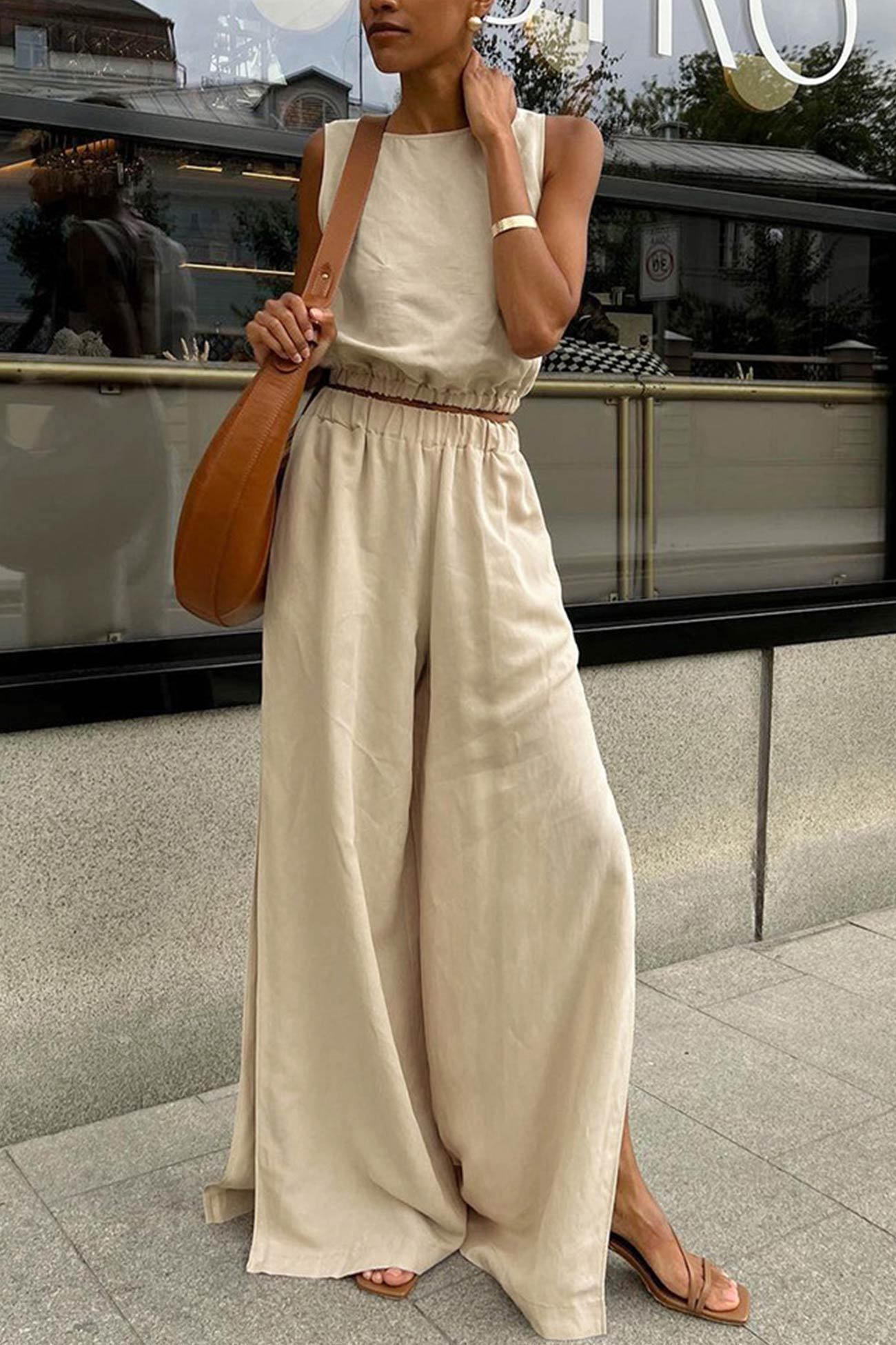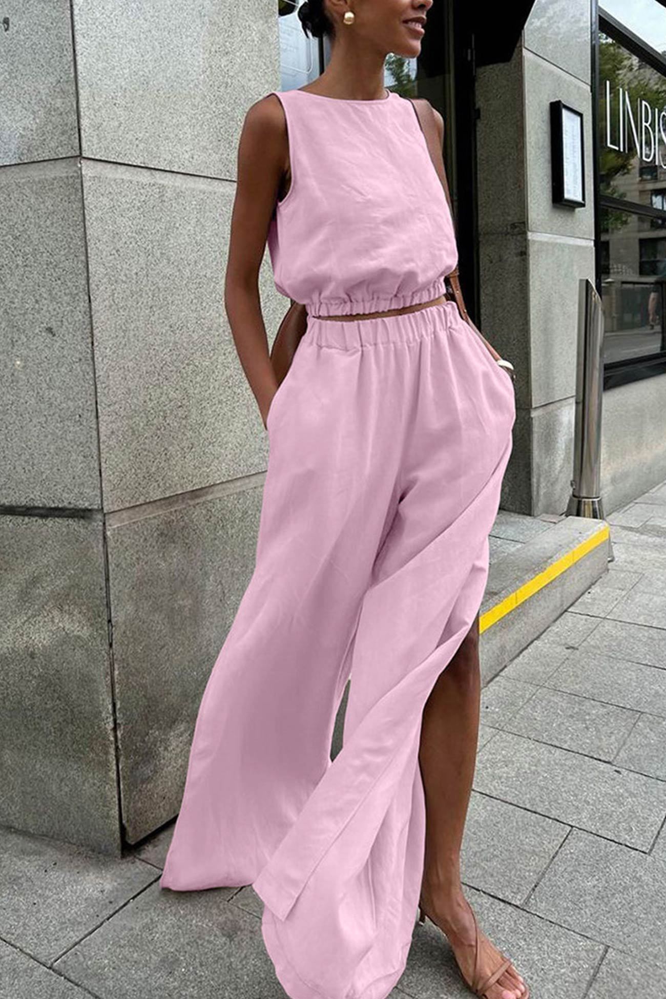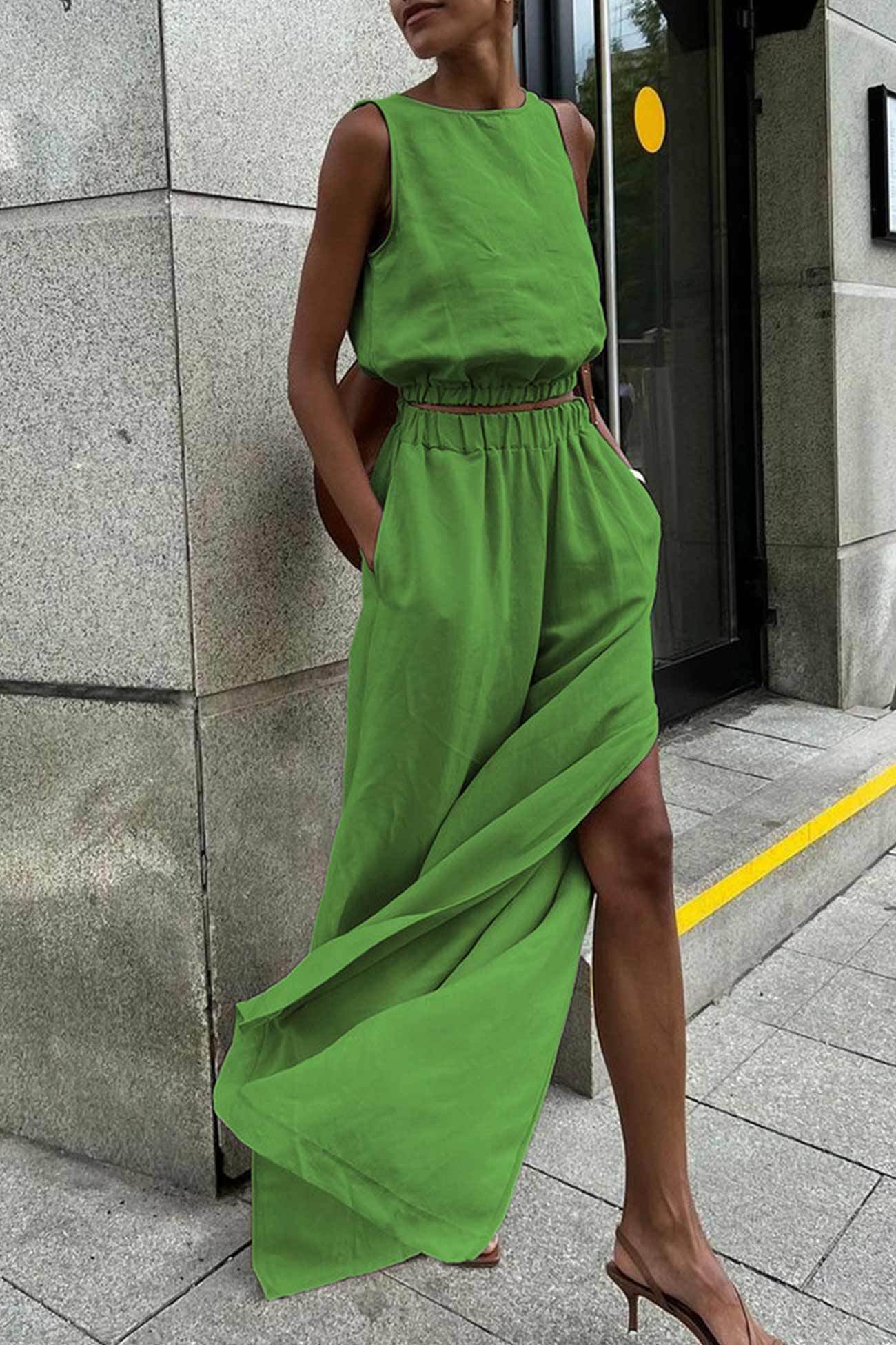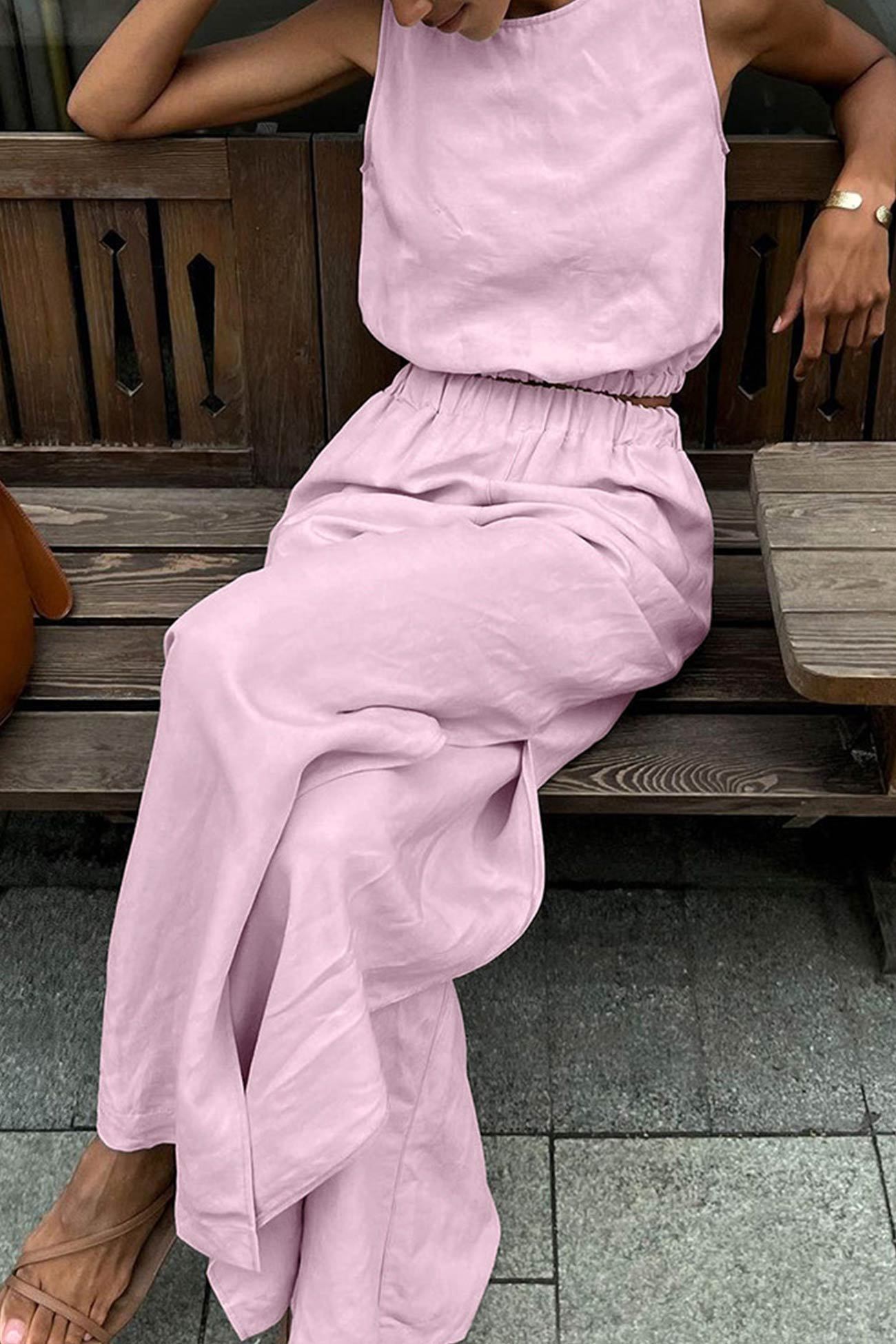 Introducing Glydel, our tank top slit pants suit that merges contemporary fashion with effortless comfort. Perfect for any event, Glydel offers a flattering silhouette with chic slit details for a modern edge. Embrace sophisticated style and versatile elegance with Glydel, your ultimate ensemble for standout looks.
