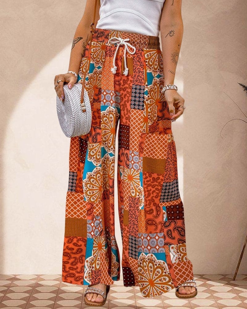 Go wild with Hanna - Bohemian Pattern Pants, featuring unique bohemian patterns. These pants boast wide legs, a high waist, and a loose fit for maximum comfort and style. Get ready to stand out with these playful and unconventional pants.