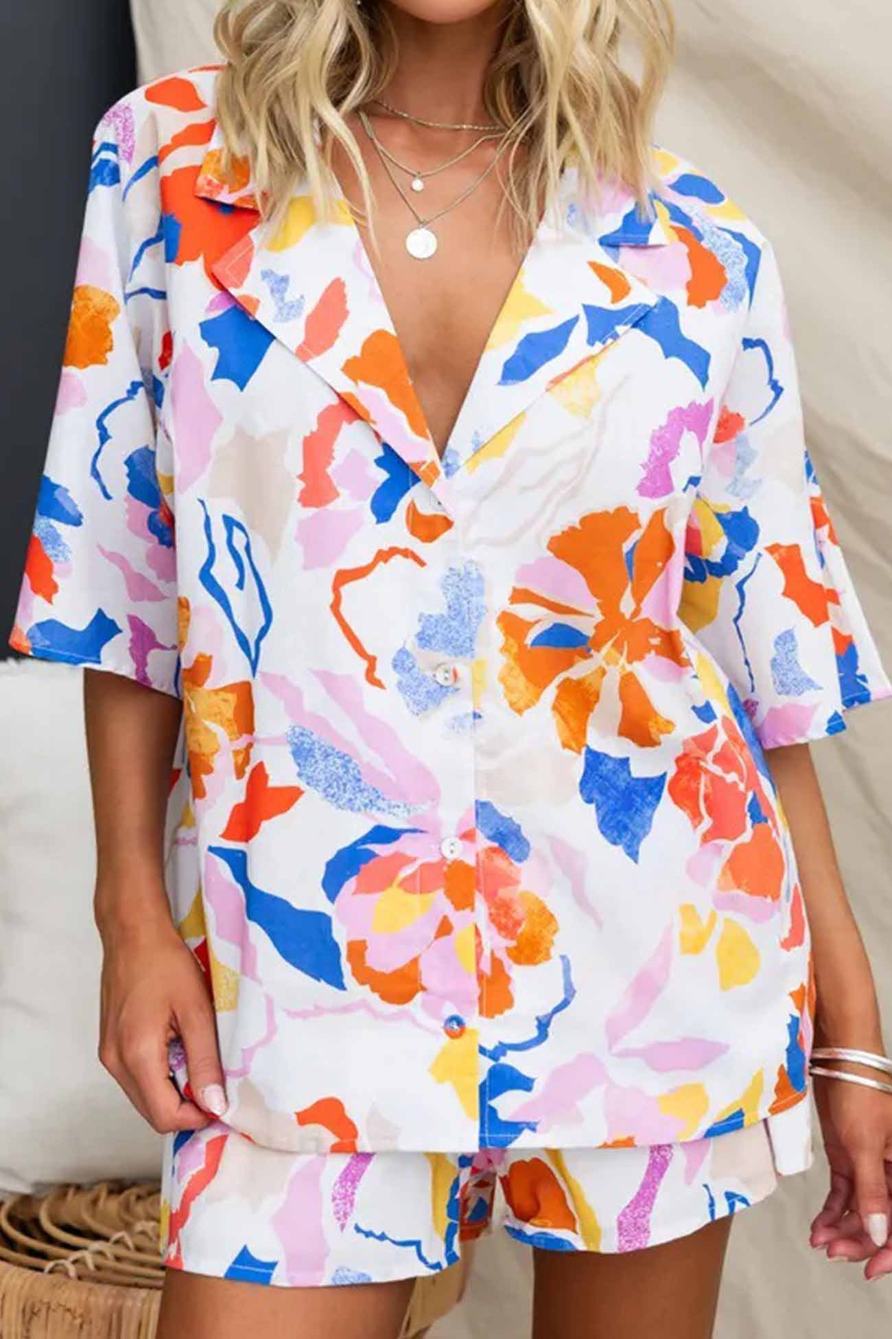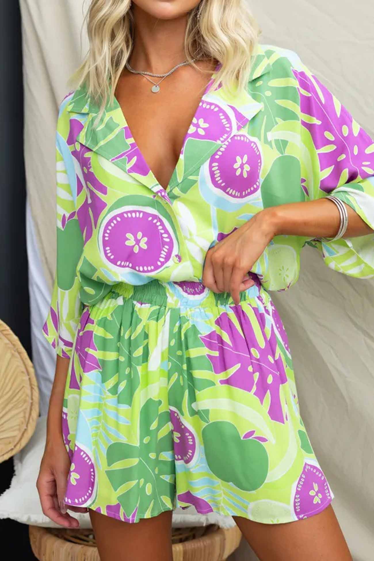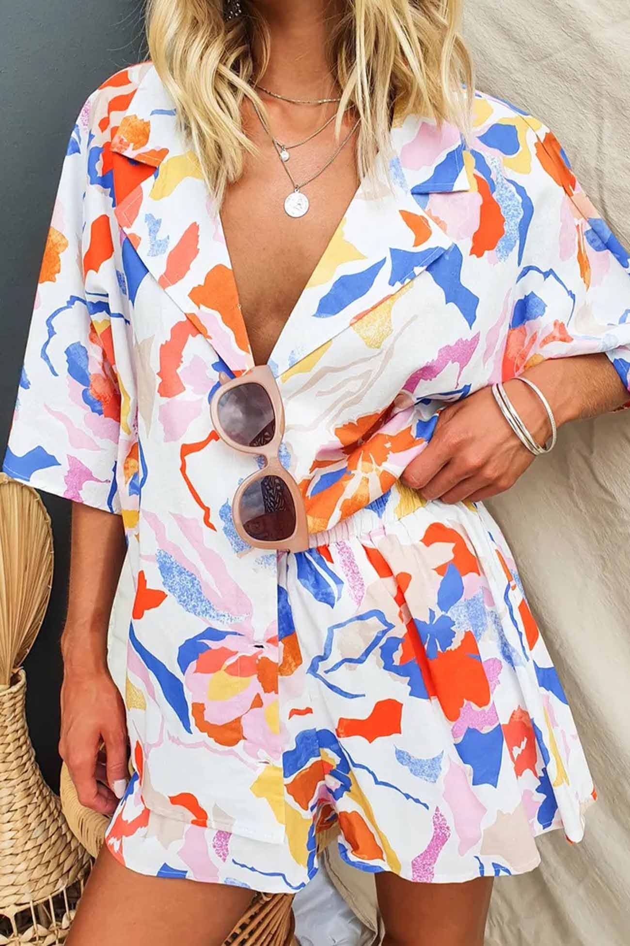 Meet the Jane, a colorful printed V-neck lapel shorts set that's perfect for making a vibrant statement. With its playful patterns and chic design, this set brings effortless style to any occasion.