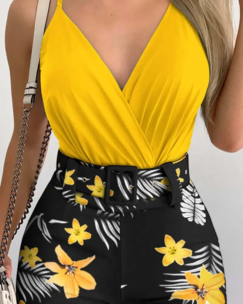 Look effortlessly cute in our Jill tank top and belted shorts set. The V-neck and sleeveless design are perfect for hot summer days, while the floral print and included belt add a touch of whimsy. This 2-piece set is both stylish and comfortable.