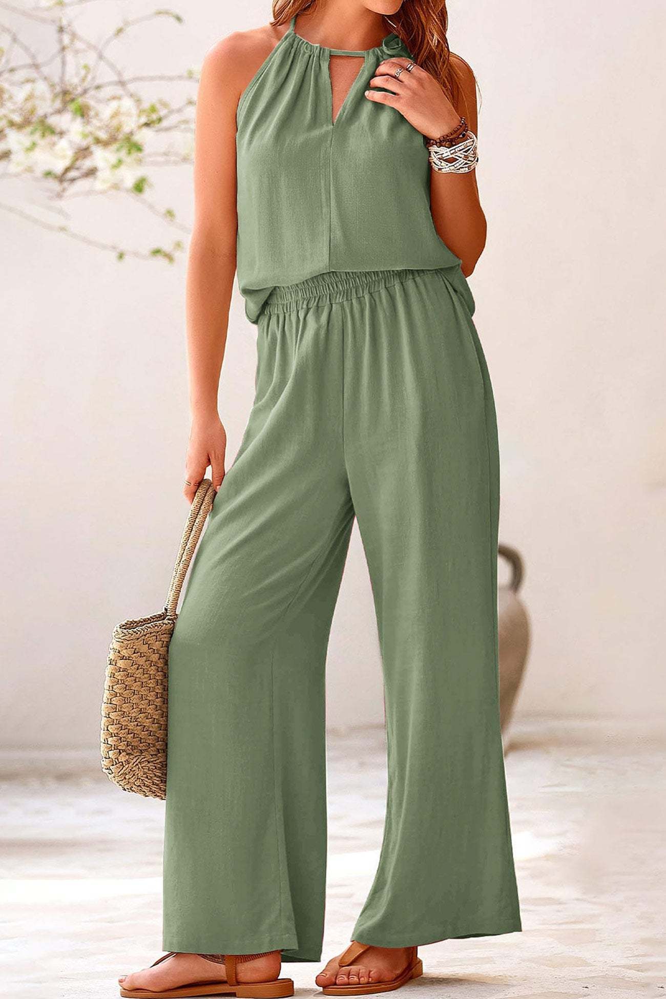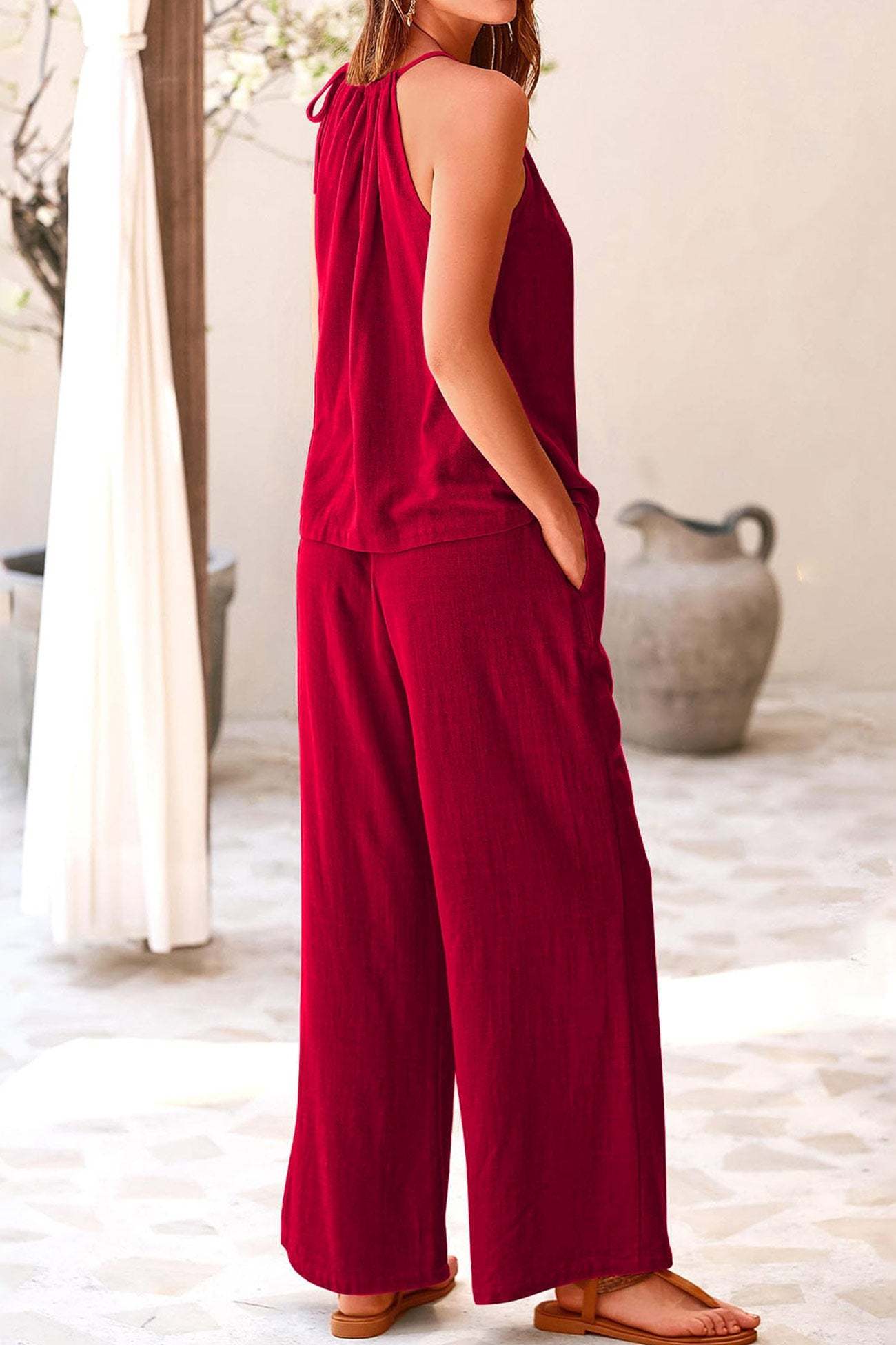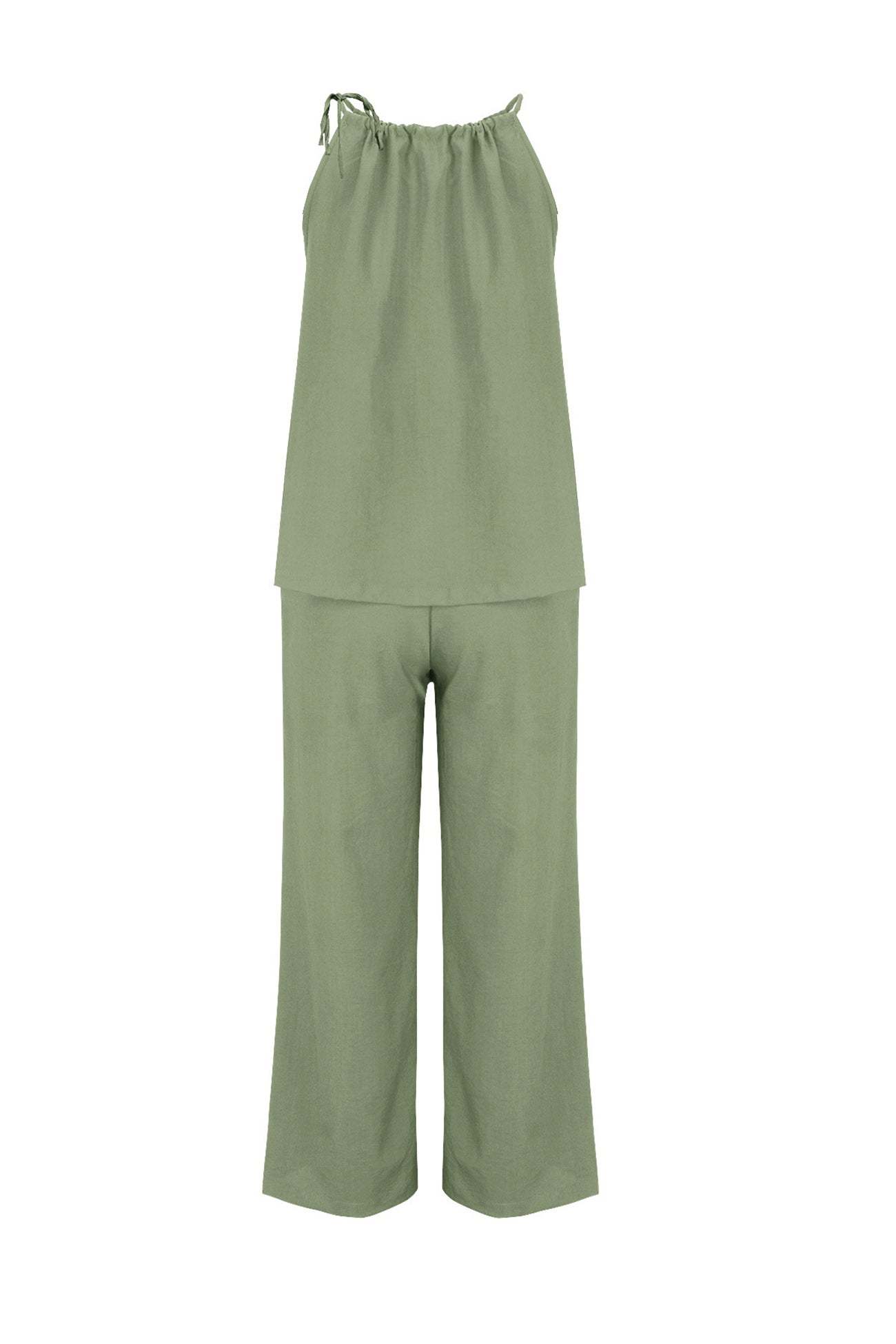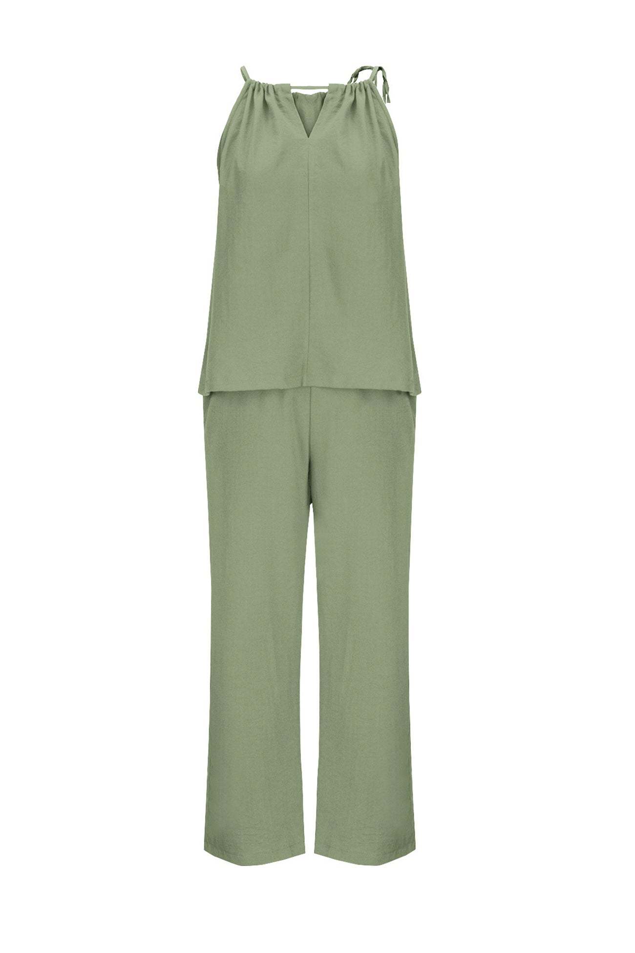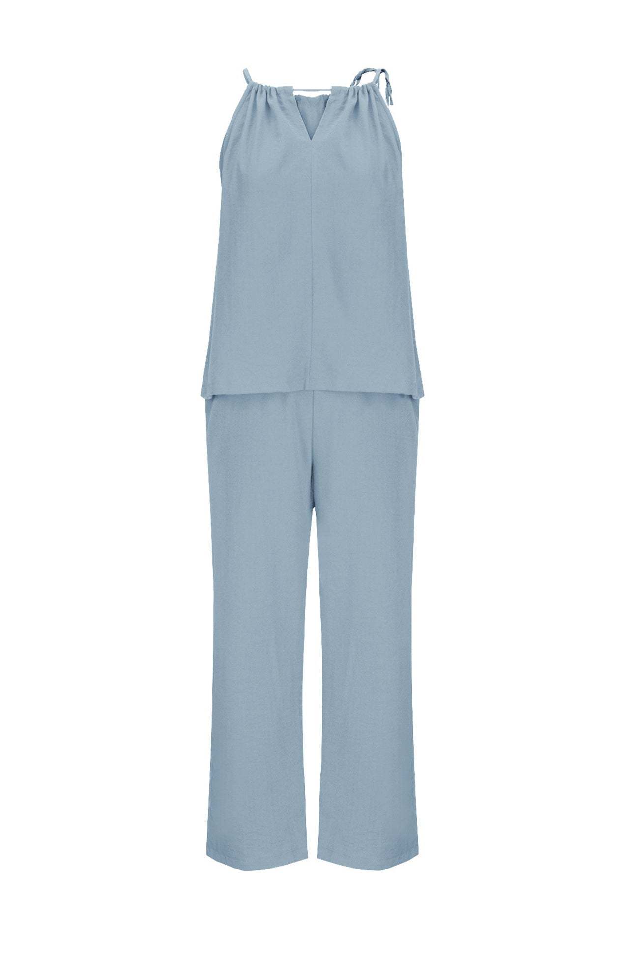 Introducing Leila, our tie-up tank pants suit that brings together relaxed comfort and chic style. Perfect for any occasion, Leila features a flattering tie-up detail and sleek silhouette that enhance its modern appeal. Embrace versatile elegance and effortless fashion with Leila, your go-to ensemble for a polished and trendy look.