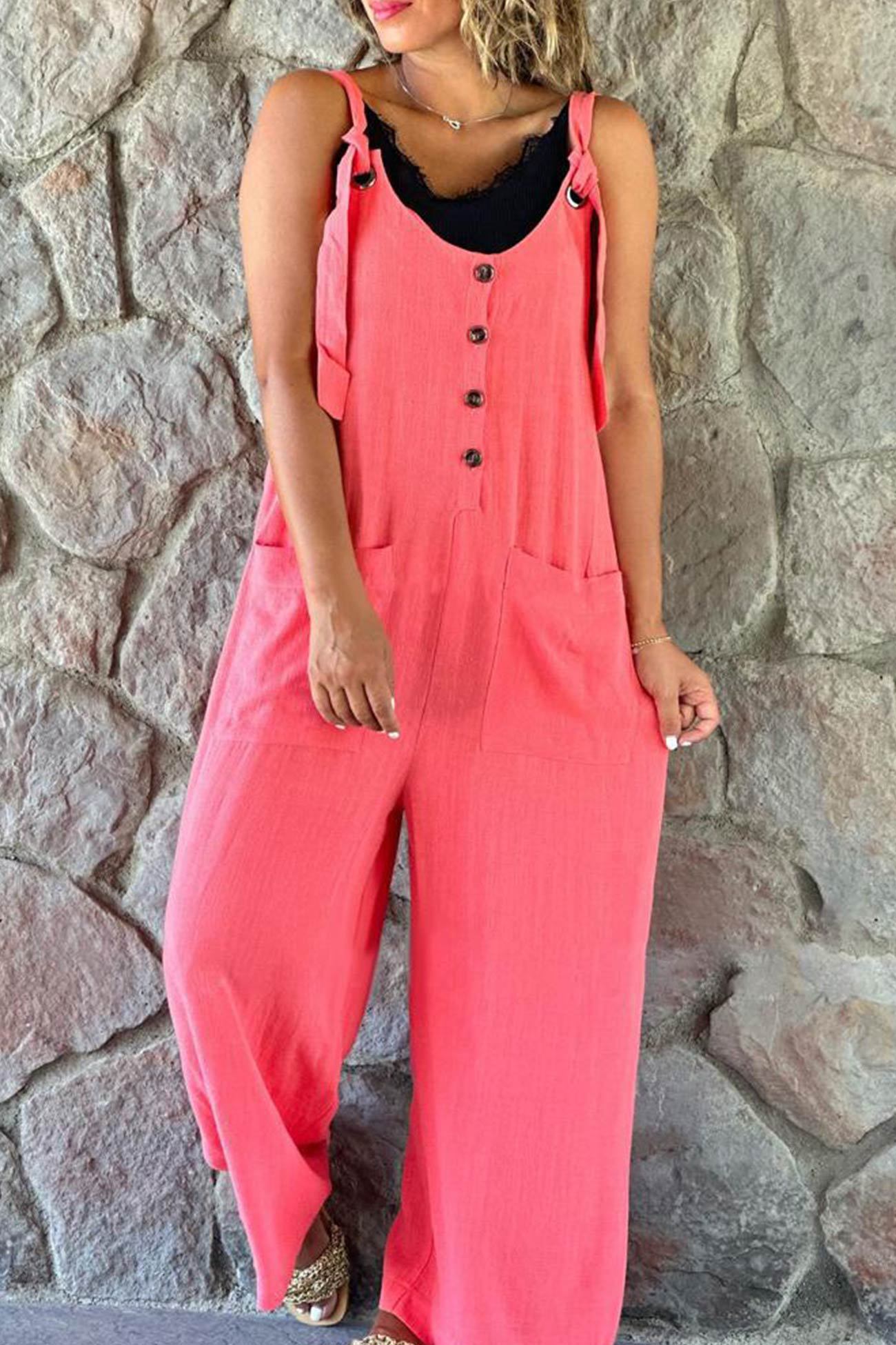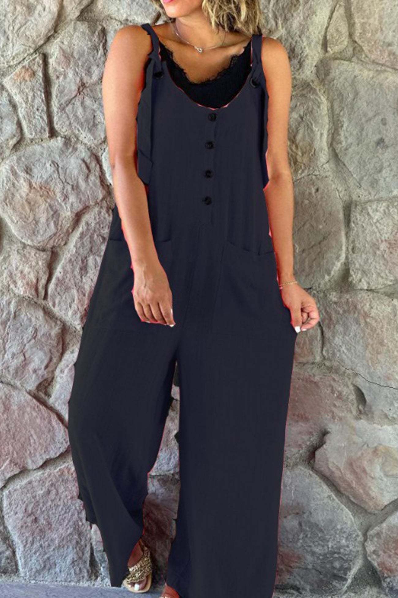 Elevate your style with the Lena Button Straps Solid Jumpsuit, a perfect blend of comfort and sophistication. Its sleek design and stylish button straps make it a must-have for fashion-forward women.