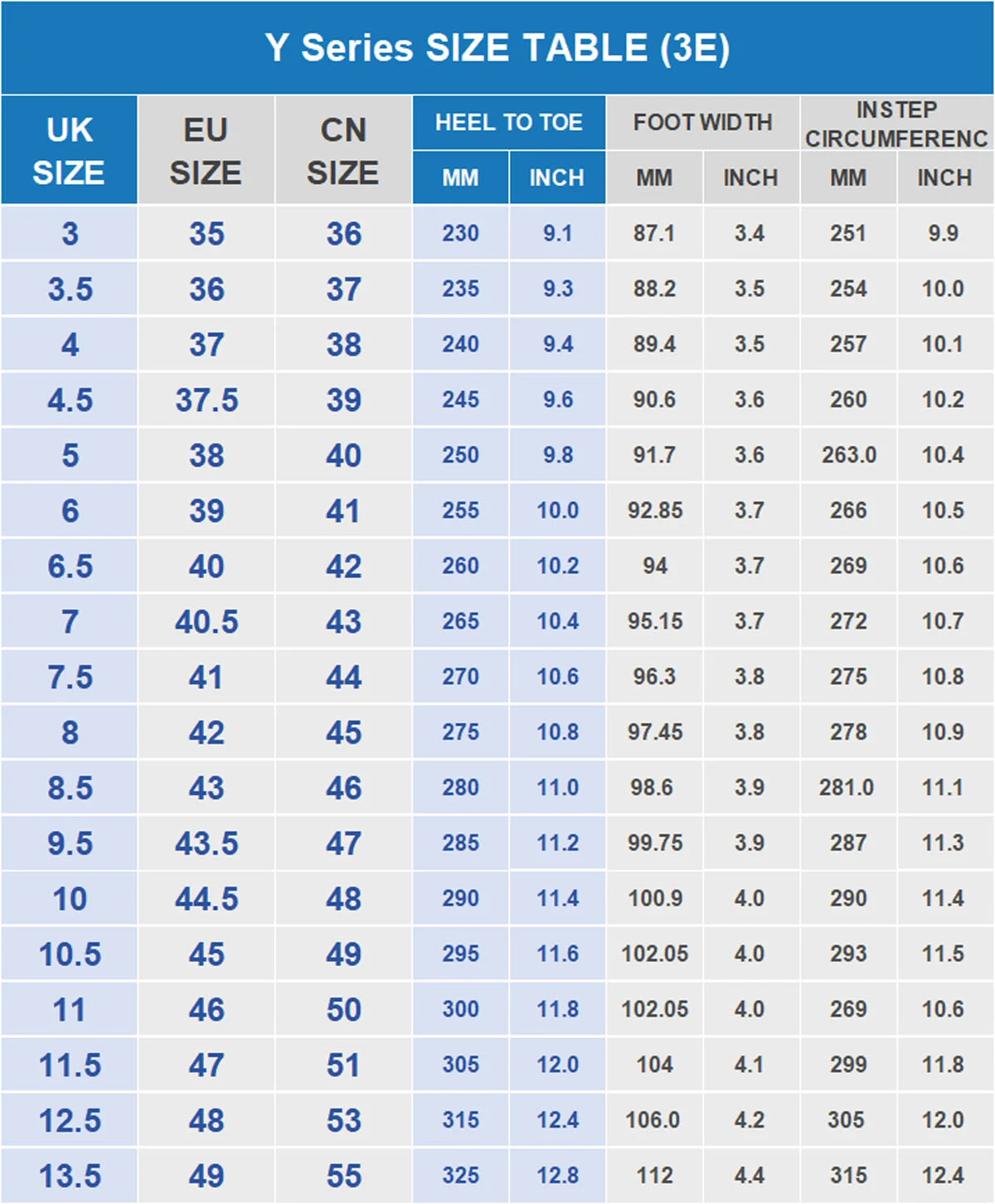 SIZE CHART