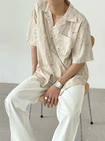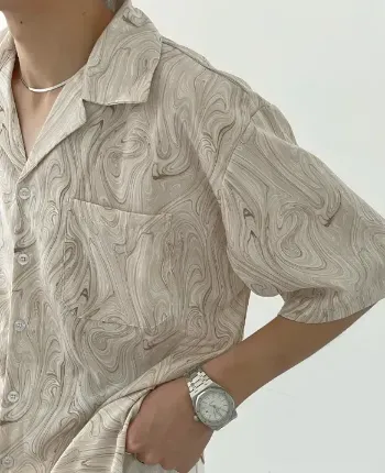 Summer Collection: the Wave Pattern Short-Sleeve Shirt for men. Crafted from premium ice silk fabric, this shirt offers a unique blend of comfort and style. With its distinctive wave pattern and relaxed, oversized fit, it embodies a laid-back yet sophisticated look perfect for the season. Ideal for those who appreciate a touch of individuality in their casual wear, this shirt effortlessly combines modern flair with classic ease.