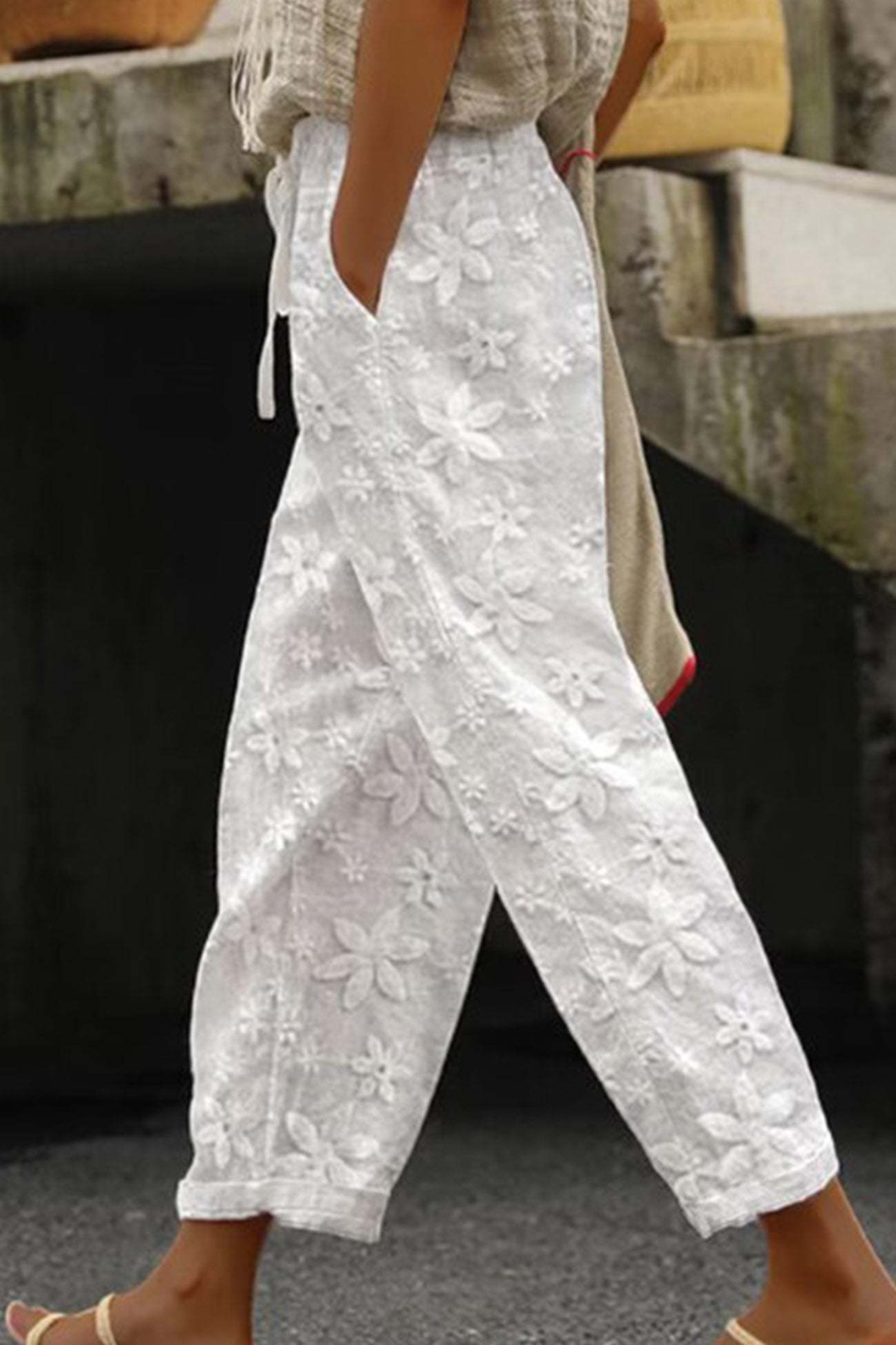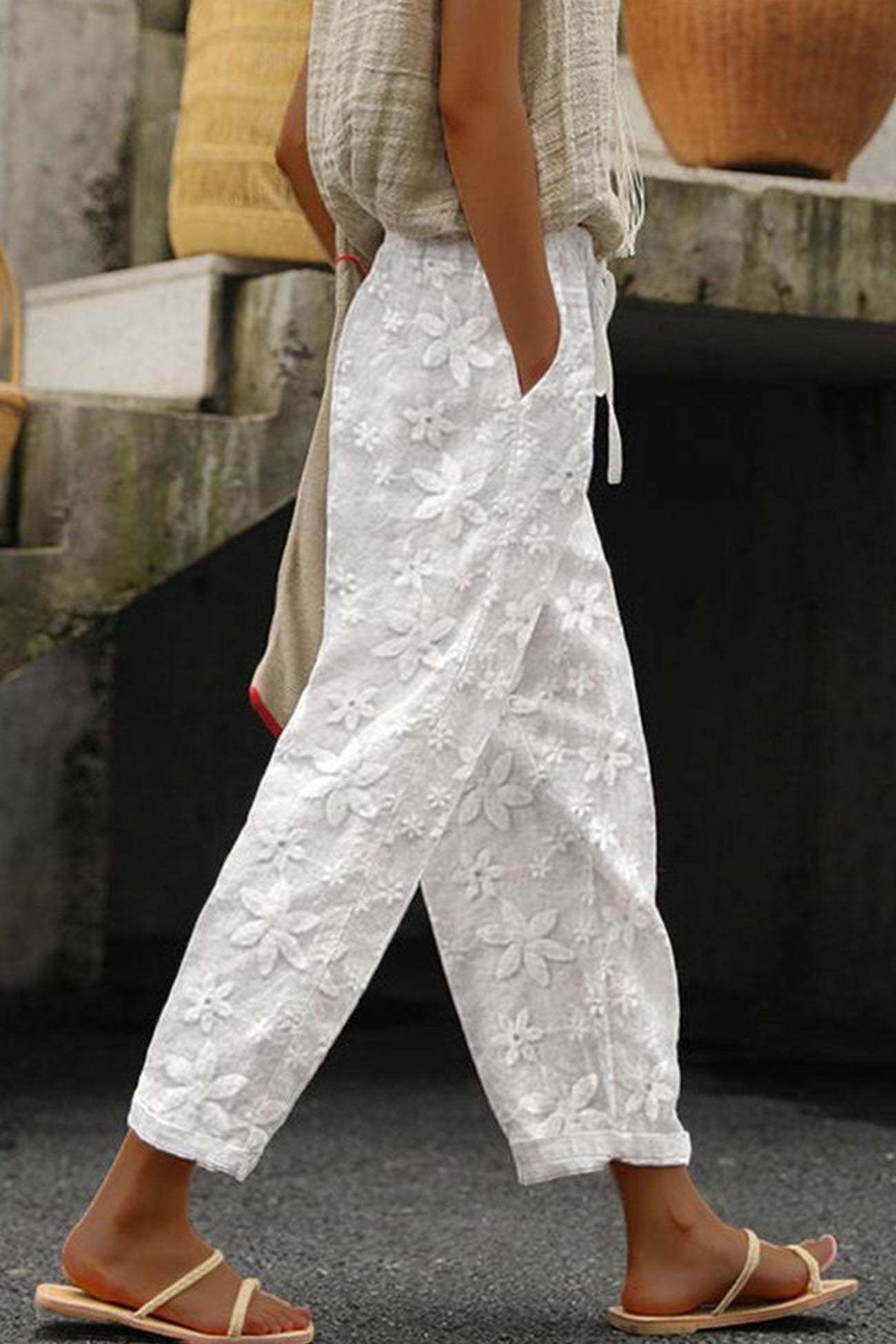 Effortlessly Chic: Selma Eyelet Embroidery Overall Carrot Pants