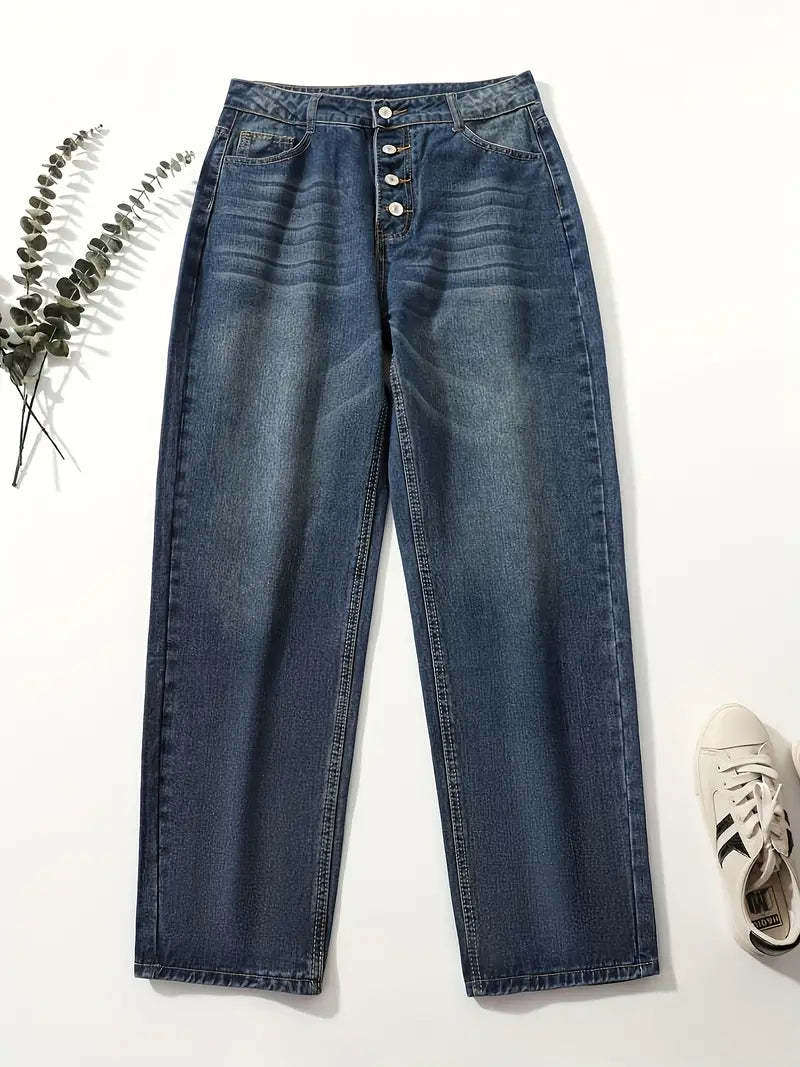 Design: The Trisha jeans boast a flattering high waist and wide-leg design, creating a chic silhouette. With a single-breasted closure for added sophistication and crafted from non-stretch denim, these jeans offer a relaxed fit ideal for everyday comfort and style.