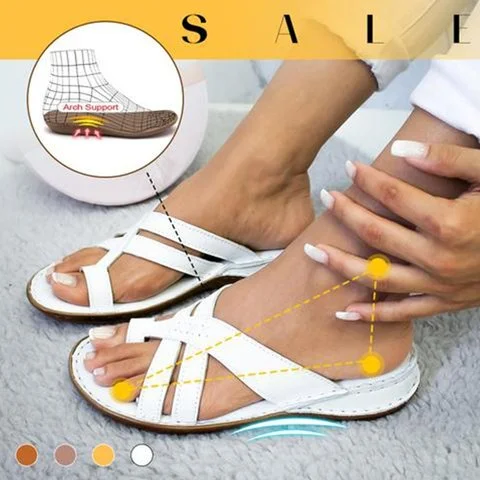 Sandal structure is meant to correct toes that have been deformed or misaligned by wearing uncomfortable shoes that alters toe structure like high pointy heels.
